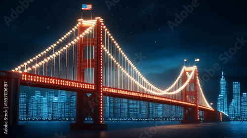Naklejka premium Illuminated Bridge at Night in Pixel Art Style
