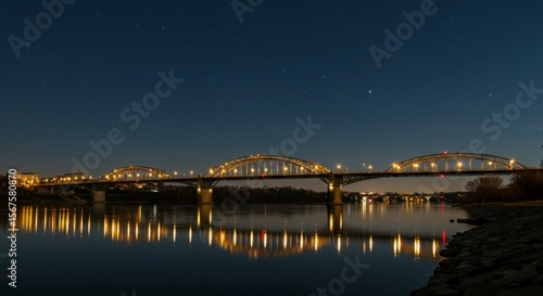 Obraz premium Illuminated bridge at night over river
