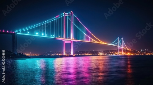 © Bejo Studio, Obraz premium Illuminated bridge, Istanbul nightscape, city skyline, tourism