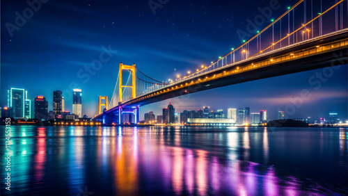 Fototapeta premium Illuminated bridge over city waterfront