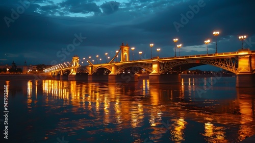© Beer AI, Fototapeta premium Illuminated Bridge Over River at Night