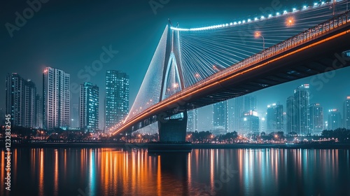 Naklejka premium Illuminated Bridge Spanning Cityscape at Night