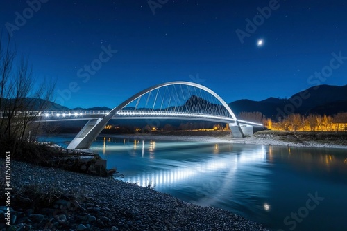 © Lumeo, Obraz premium Illuminated Bridge Spanning River Under Night Sky