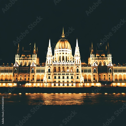 © Sobat, Fototapeta premium Illuminated Budapest Parliament at Night.