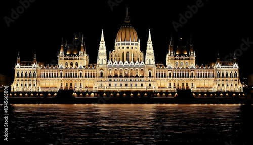 © Sobat, Fototapeta premium Illuminated Budapest Parliament at Night. (1)