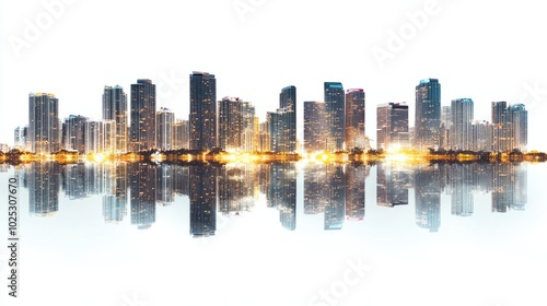 © RodolfoJesus, Obraz premium illuminated buildings reflecting in the water generative ai