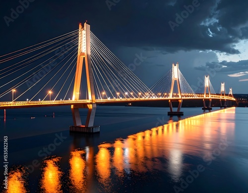 © ooya, Obraz premium Illuminated cable-stayed bridge at night (1)