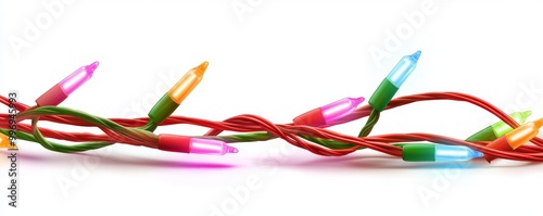 Fototapeta premium Illuminated celebration with Christmas light line on white background.