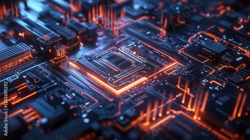 © Alexander, Obraz premium Illuminated circuit board showcasing advanced electronic components and design