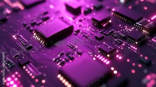 Obraz premium Illuminated Circuit Board Showing Complex Microchip Technology