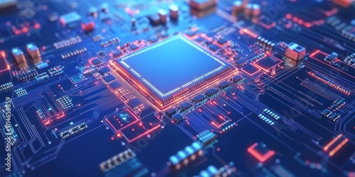 Obraz premium Illuminated Circuit Board Shows Central Processing Unit