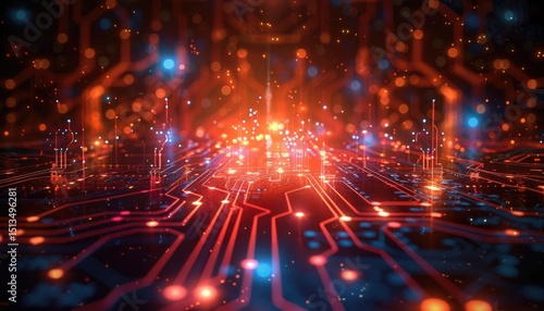 © boler, Fototapeta premium Illuminated circuit board with glowing connections.