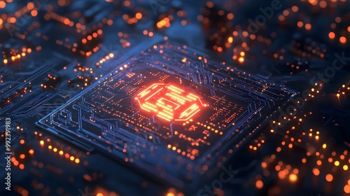 © Jojo*, Obraz premium Illuminated Circuit Board with Glowing Lines and Points
