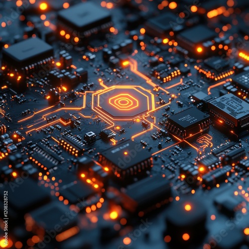 Fototapeta premium Illuminated Circuit Pathway on High-Performance Processor - Macro Shot of Technology Innovation