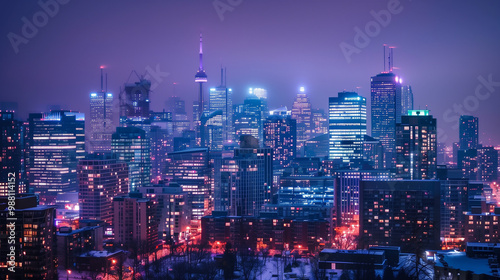 © Mutshino_Artwork, Fototapeta premium Illuminated city skyline at night with glowing skyscrapers and colorful lights