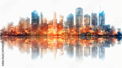 © MAHMED, Fototapeta premium Illuminated cityscape on a transparent background, AI Generated