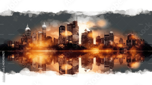 © MAHMED, Fototapeta premium Illuminated cityscape on a transparent background, AI Generated