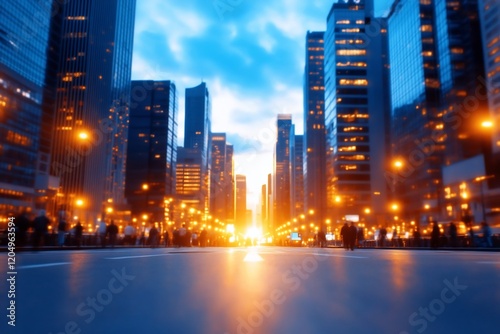 Obraz premium Illuminated Cityscape with Smart Streetlights Adjusting to Pedestrian...