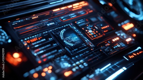 Obraz premium Illuminated control panels display advanced futuristic technological data...