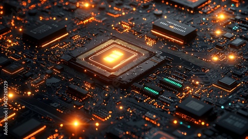 © scrollstudio, Fototapeta premium Illuminated CPU on a circuit board.