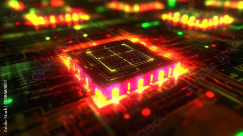 © nur, Obraz premium Illuminated CPU on circuit board.