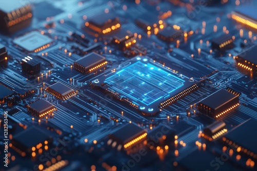 Obraz premium Illuminated CPU on Circuit Board; Tech Background