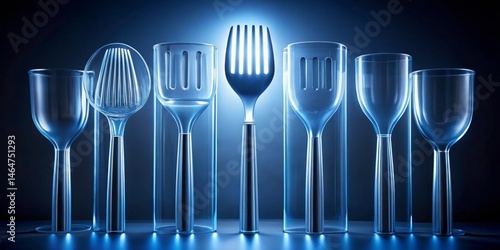 © Aumarin, Fototapeta premium Illuminated Culinary Utensils in Glass Enclosures A Study in Transparency and Form