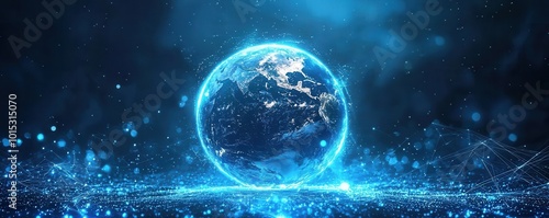 Obraz premium Illuminated digital earth with a glowing blue atmosphere on a cosmic blue...