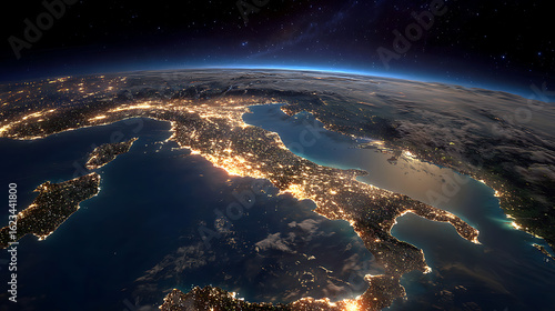 Obraz premium Illuminated Earth Coastlines Under Starry Sky night satellite