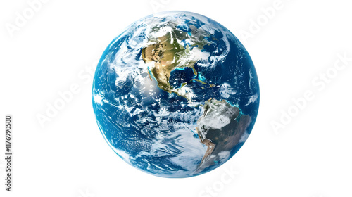 © mustkim, Fototapeta premium Illuminated earth seen from space isolated on a transparent background