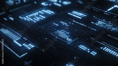© Rere_Art151, Obraz premium Illuminated electronic circuitry reveals complex pathways and technological infrastructure