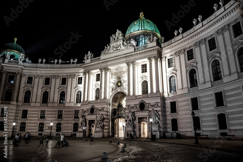 Fototapeta premium Illuminated Entrance Portal To Imperial Residence Hofburg In The Inner City...