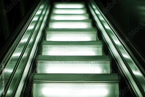 Obraz premium Illuminated escalator steps in dark space