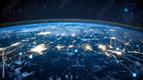 Obraz premium Illuminated Global Network Connection with Serene Celestial Backdrop