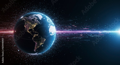 Obraz premium Illuminated globe with digital data streams traversing across it, showcasing...