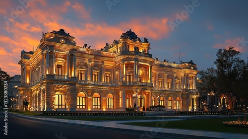 Fototapeta premium Illuminated grand palace at sunset.