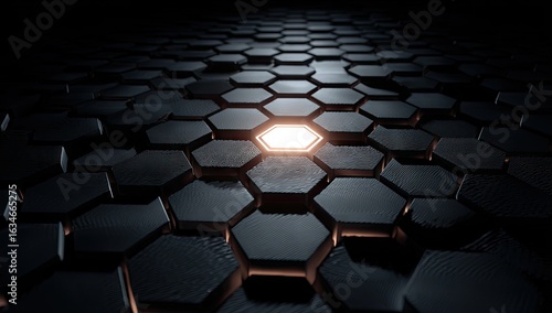 © Jordi El Nino, Obraz premium Illuminated Hexagon Pattern in Dark Abstract Background