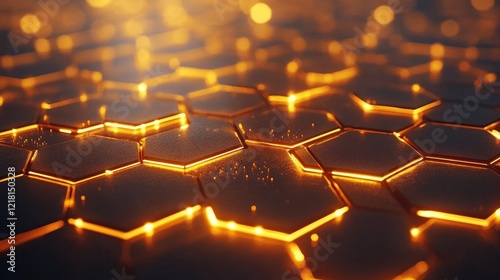 © addymawy, Obraz premium Illuminated Hexagonal Grid Pattern Abstract Background