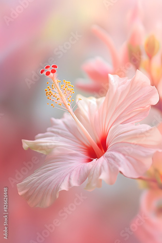 © slonme, Naklejka premium Illuminated Hibiscus Flower Against a Soft Bokeh Background