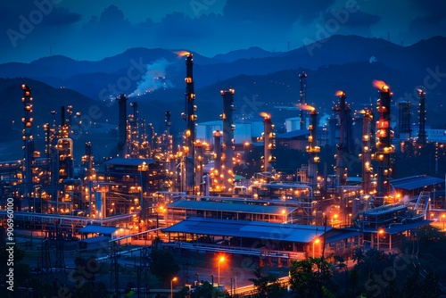 Obraz premium Illuminated Industrial Landscape at Dusk