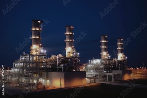© evening_tao, Fototapeta premium Illuminated Industrial Plant at Night