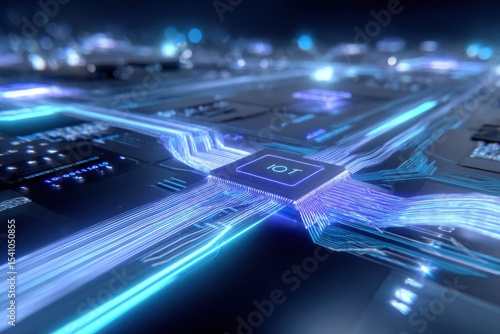 Obraz premium Illuminated IOT Microchip With Glowing Data Streams, Representing Digital...