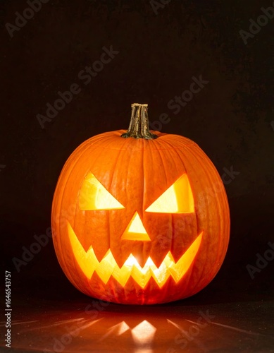 Obraz premium Illuminated Jack-o'-Lantern on Dark Background halloween background