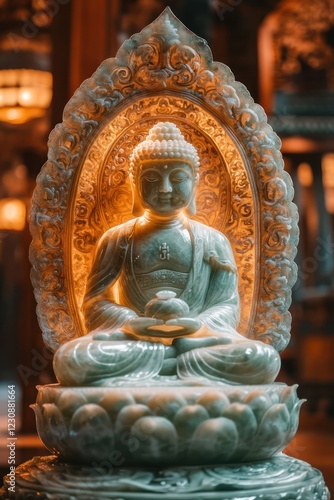 © arlisa, Fototapeta premium Illuminated Jade Buddha Temple Serenity
