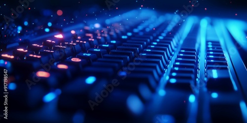Obraz premium illuminated keyboard keys, vibrant blue lighting, perfect for...