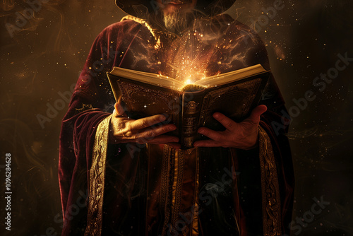 © artefacti, Naklejka premium Illuminated Knowledge: Sorcerer's Tome
