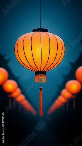 Obraz premium Illuminated Lantern Path for Asian Temple.