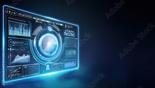 © FimCraft, Obraz premium Illuminated Laptop with Soft Blue Light Creating a Calm and Modern Workspace Atmosphere Ideal for Creative and Professional Tasks at Night