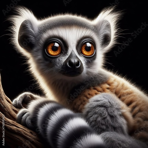 © Alicina, Fototapeta premium Illuminated lemur on black background. AI generated