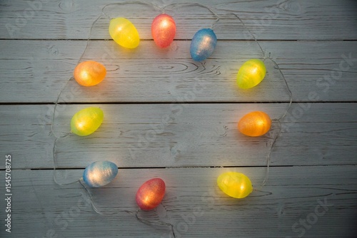© vectorfusionart, Fototapeta premium Illuminated lights on wooden planks